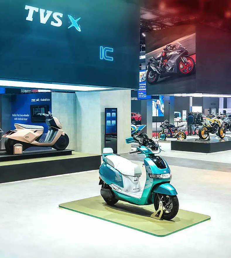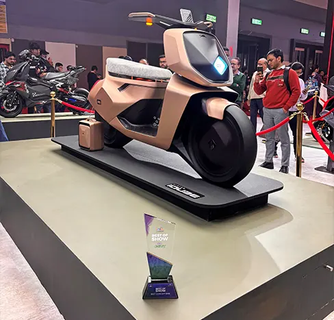 TVSM's display also emphasised urban and last-mile mobility with the TVS Concept EB1, a futuristic electric bicycle that is rare-earth magnet-free and fully connected, and the TVS King Electric three-wheeler, an advanced, spacious EV solution for shared mobility.