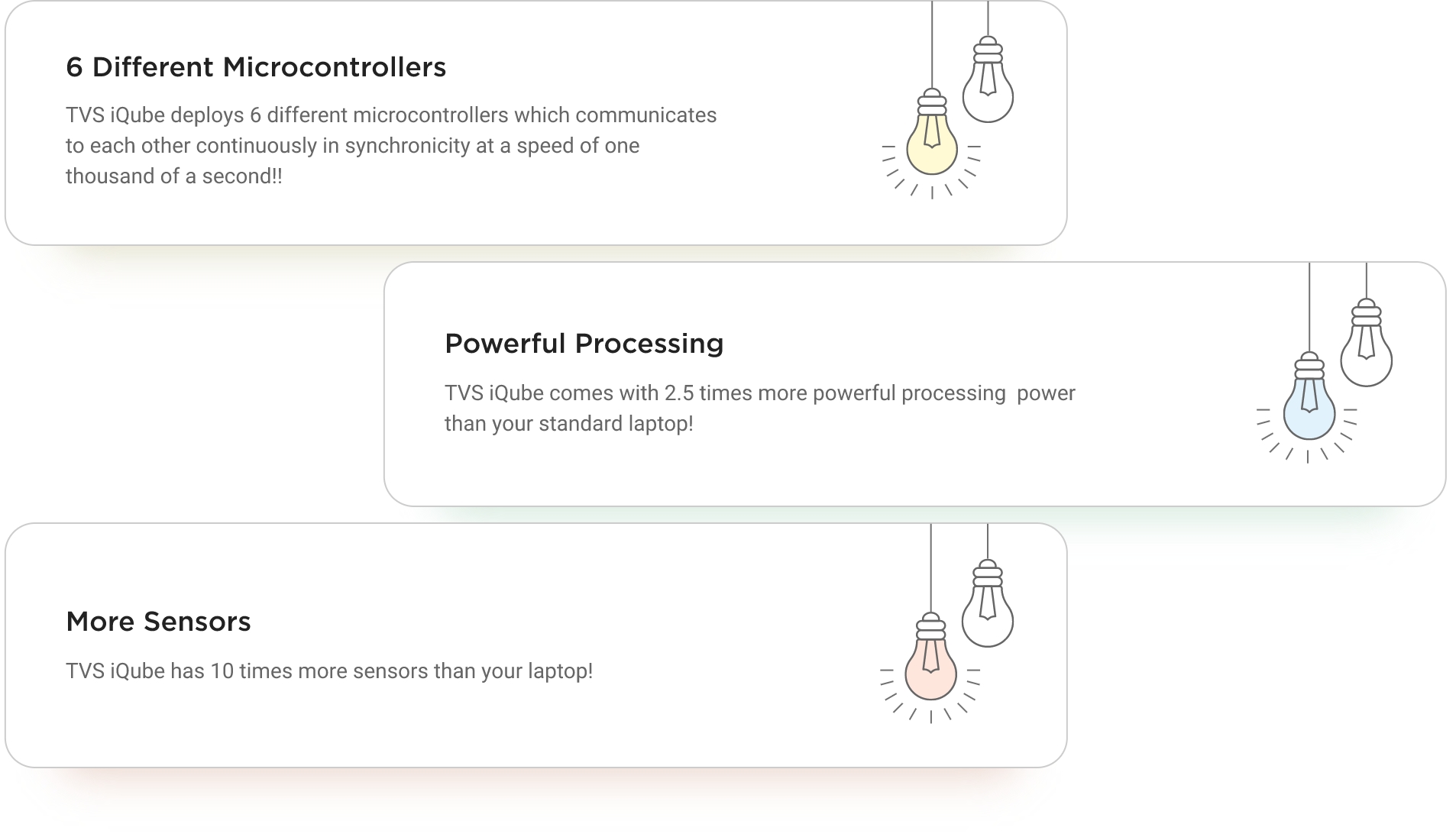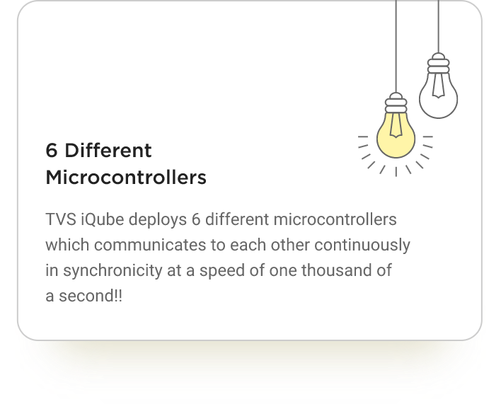 The TVS iQube is powered by a 3 Li-ion battery packs that are IP 67 rated, ensuring water and dust resistance. We have gone a step further and added additional safety for the batteries with high strength aluminium extrusion casing. The battery is also backed by indigenously developed BMS (battery Management System) that gives you longer battery life. With a 3 year/50,000 kms warranty all you need to do is – enjoy your rides, worry-free!