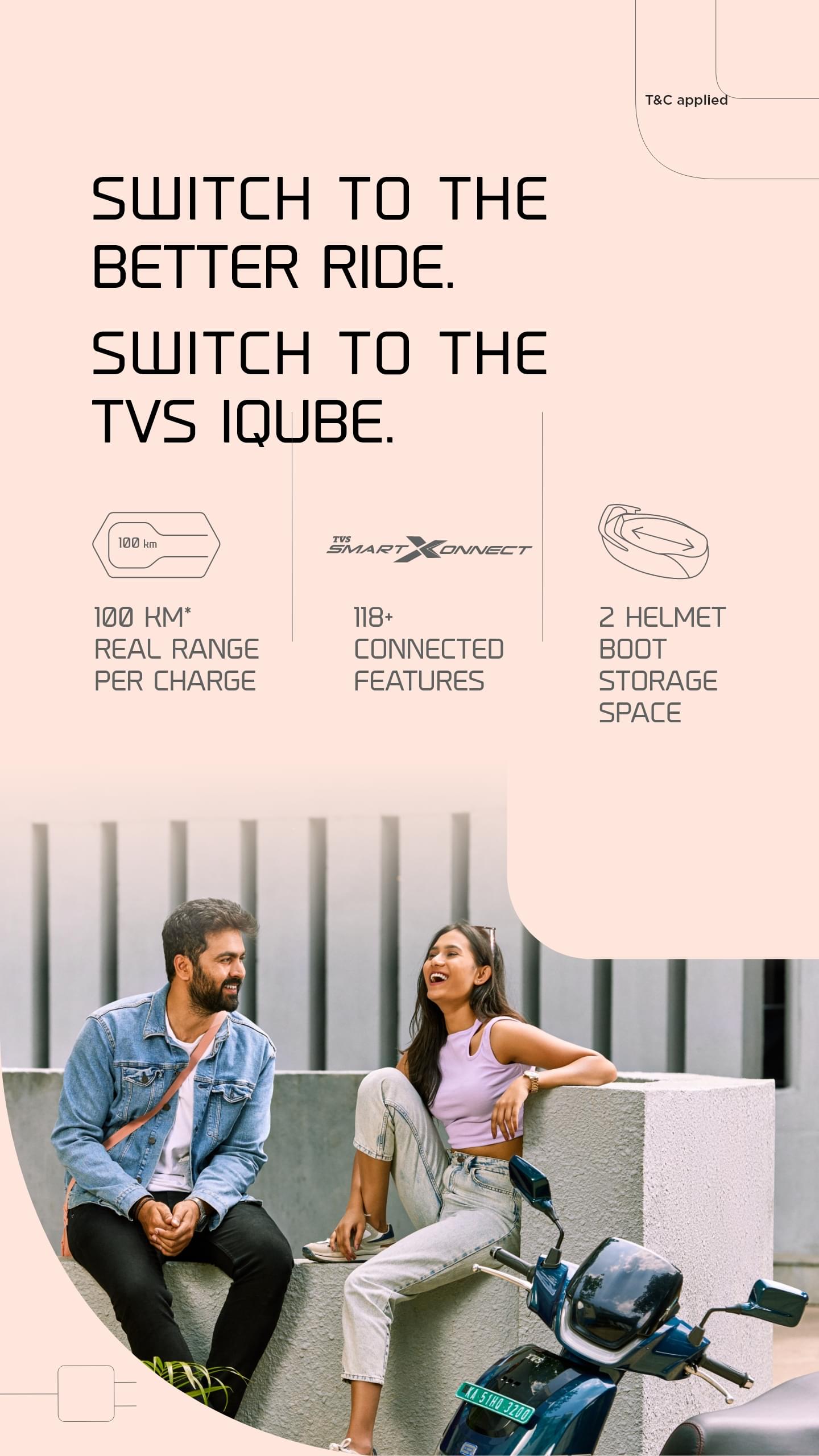 Redefine your idea of range with the TVS iQube Electric’s ultra-low running cost.Enjoy a superior, smart, and connected commute - without ever worrying about the cost of every ride. Smart savings, every single day.