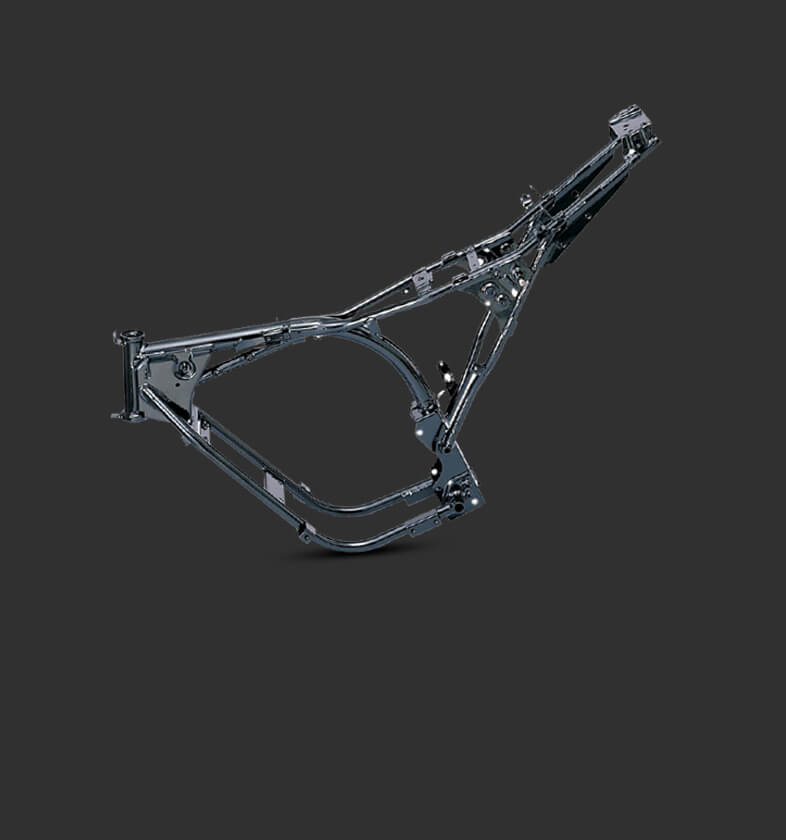 The spine of the racing machine provides stiffness for straight line performance and flex for aggressive cornering.