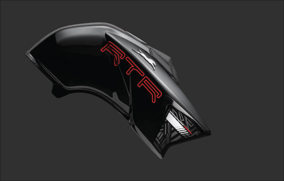 The tank reduces engine heat doubling as both an essential performance feature and a statement of pure racing presence.