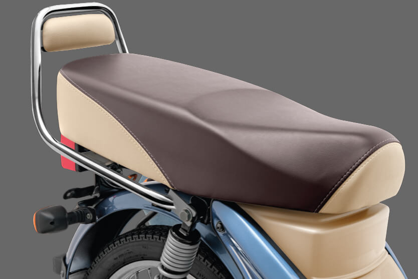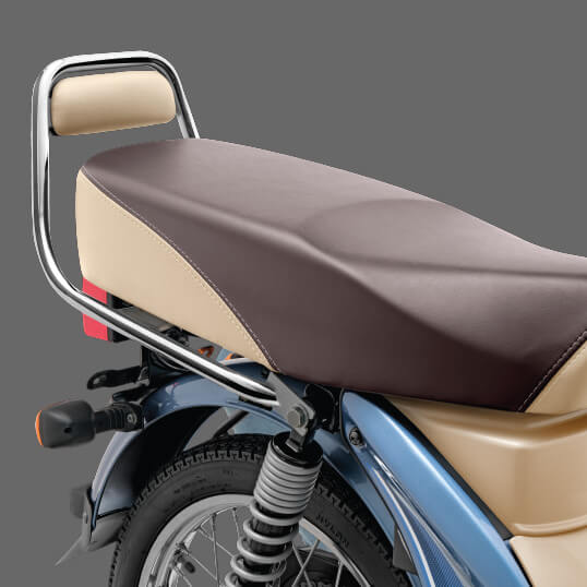The cushioned backrest provides safety & better comfort for the pillion rider.