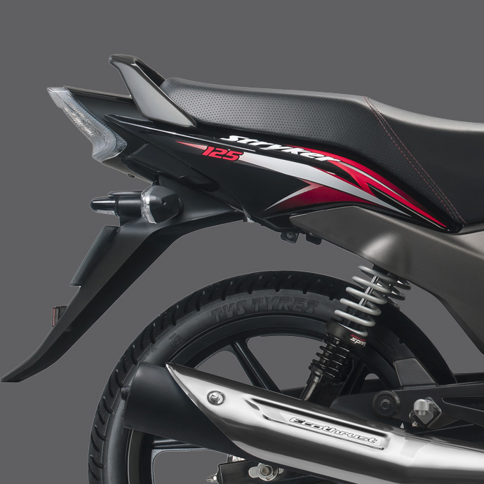 5 step Adjustable rear shock absorbers with Dual Spring enables comfortable ride for long and short rides even on rough roads.