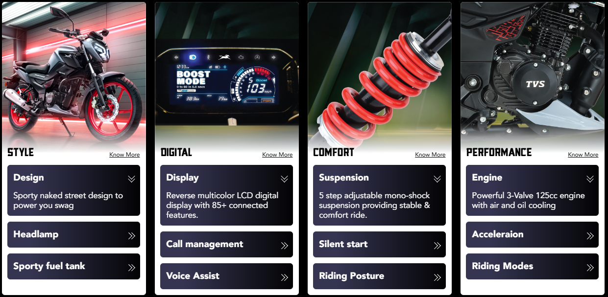 Here’s more about the latest model of the TVS Raider: -