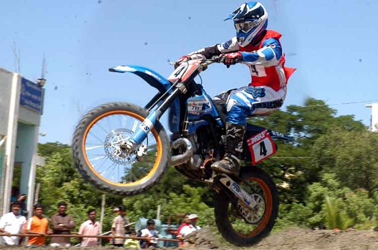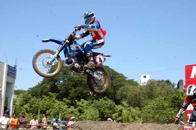 3 times national champion C. Vijaykumar of TVS Racing emerged victorious in the first moto and came third in the second moto of the prestigious foreign open class thereby earning maximum points and being adjudged as the ‘Best Rider of the Day’ at the second round of the 2006 season of the MRF National Supercross held in Chennai at the C. Kandaswamy College for Men, Annanagar Chennai in the presence of over a 6,000 strong crowd.