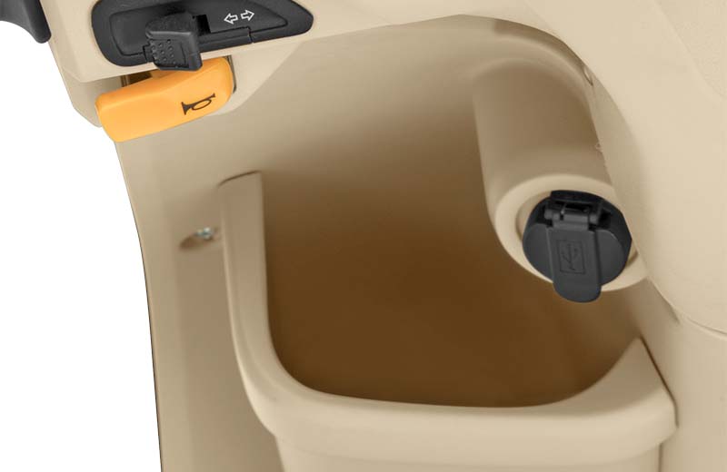 Front mobile charger facility coupled with Utility box provides unmatched convenience of charging on-the-go along with easy access.