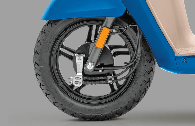 It's a bond between your scooter and the road. Durable, Stylish & Lightweight All Black Alloy* Wheels. Superior Road Grip. Free of Rusting. Tubeless tyres provide tension-free long rides. (*Available in Sheet Metal Wheel also)