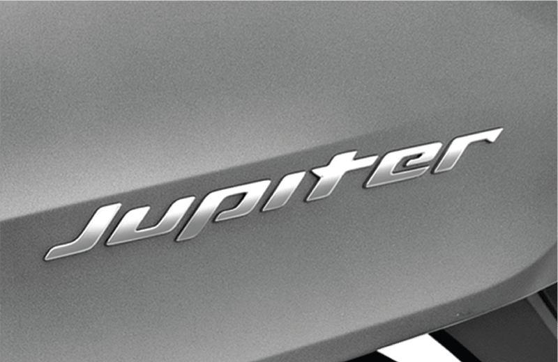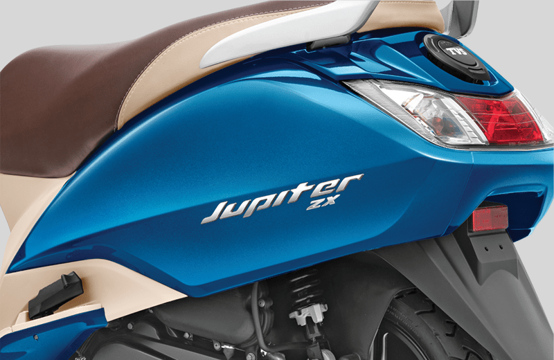 Stay ahead in style. TVS Jupiter ZX Disc embodies a 3D emblem with chrome highlights, a true signature of a premium 2-wheeler.