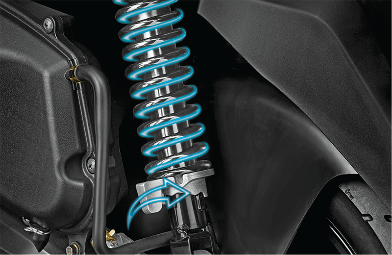 TVS Jupiter features Gas Charged Shock Absorbers in rear, specially designed to help eliminate even the smallest jerks caused by rough roads. Gasfilled rear shock absorber gives you and pillion an excellent seating comfort and protects you from hurting your back or shoulders while riding on bumpy roads.(*Base Variant)