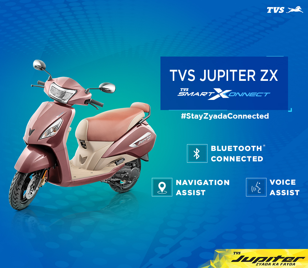 The New TVS Jupiter ZX Drum SmartXonnect comes with fully digital speedometer displaying a host of useful Information.