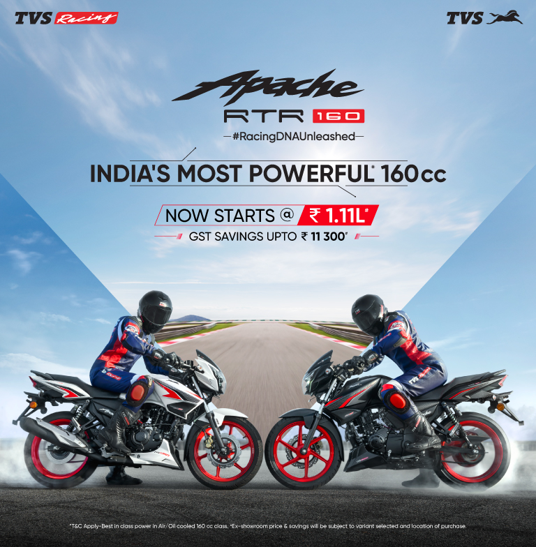 The new Apache RTR 160 now with Dual Channel ABS, race-derived colours and India's most powerful 160cc engine redefines racing excellence for passionate riders.