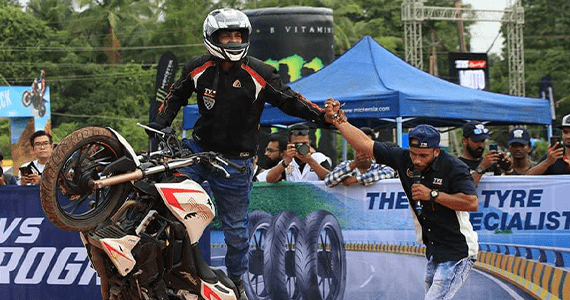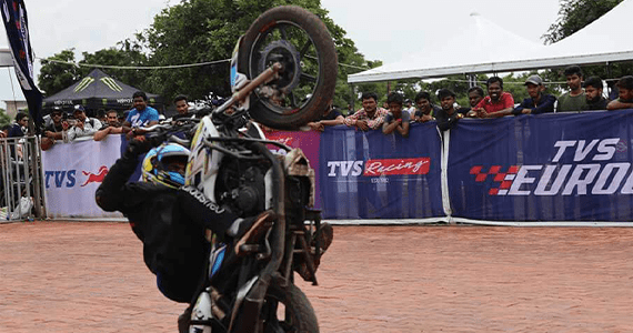 The pioneers of racing in India,TVS Racing brings you the best of adrenaline rushing stunts with Apache Pro Performance. Every racing enthusiasts dream come true. Every corner of the country is covered as stunting experts push the bike and rider to the limit. An extreme experience is guaranteed.