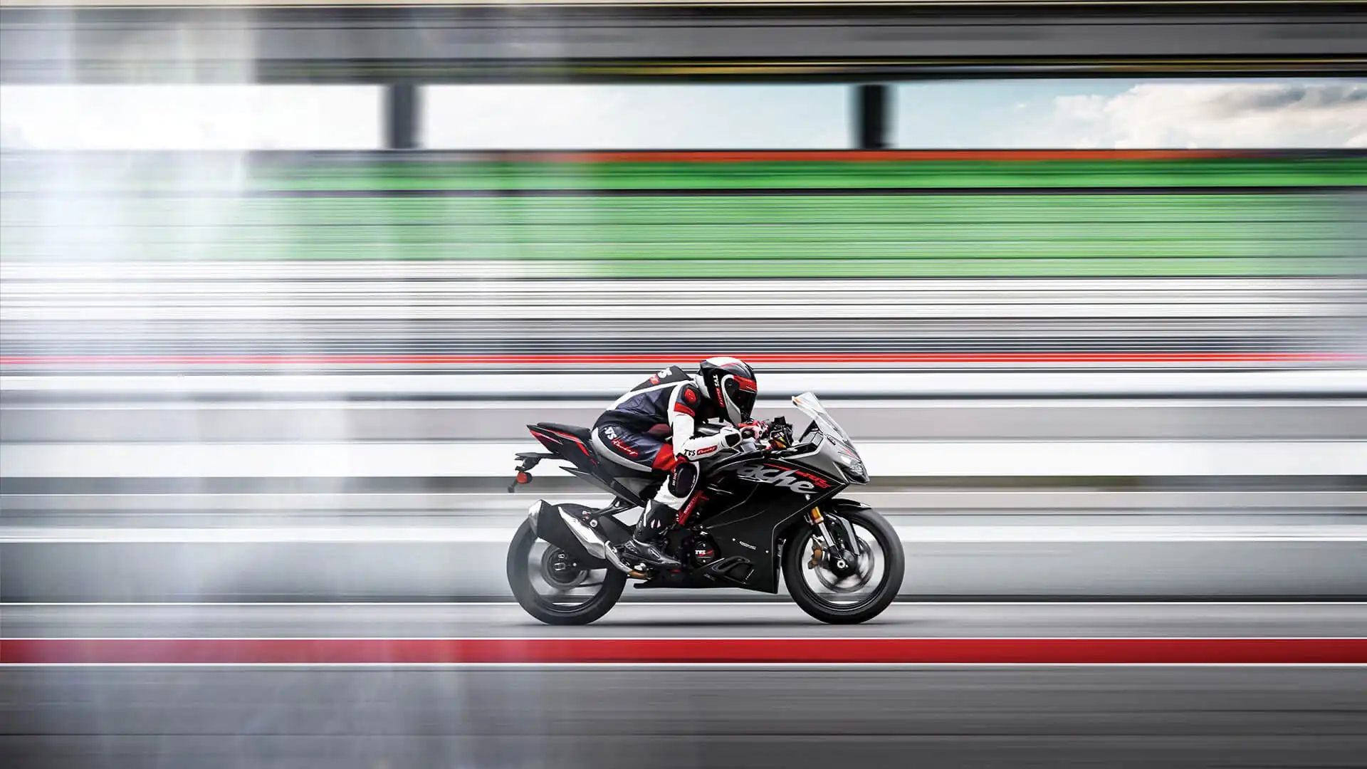The Ultimate track weapon born out of 35 years of engineering prowess and dominance of TVS Racing. The Apache RR 310 is our ultimate feat of engineering, with relentless performance and innovations like ride modes and throttle-by-wire.