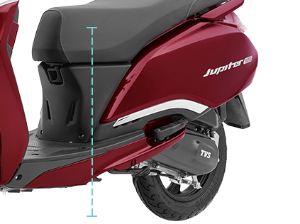 In terms of dimension, TVS Jupiter 125 has a wheelbase of 1275 mm, a ground clearance of 163mm (unladen), a seat length of 790 mm, leg room of 380mm and a saddle height of 765 mm. The kerb weight stands at 108 kg.