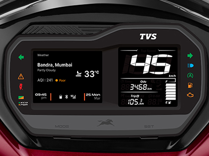 SmartXonnect is an advanced connectivity technology developed by TVS Motor. This state-of-the-art technology ensures that the rider is always connected to the world and stays updated while on the move. It offers a range of functionality from navigation and voice assist, call and SMS alerts, social media notifications, weather and news updates and a lot more features.