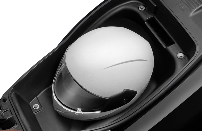 TVS Jupiter offers 33L of under seat storage which can easily store two-helmets. In addition, there is 2L of front glove box and large front leg space with retractable bag hooks for your other luggage.